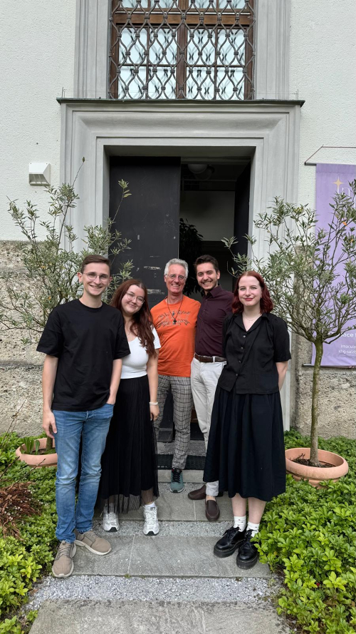 Bild 2: Vorne (v.l.n.r.): Links: Florian Mayr (Vorsitzender), Clara Grabner (Vorsitzende); Hinten (v.l.n.r.): Marlene Gartner (gewähltes Mitglied), Christian Wallisch-Breitsching (Theologischer Assistent), Simon Rabensteiner (Finanzreferent)